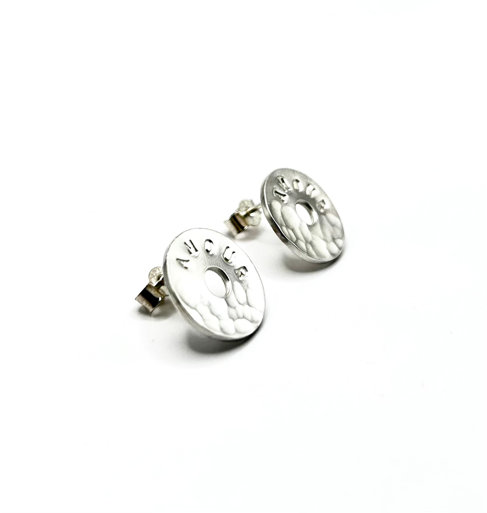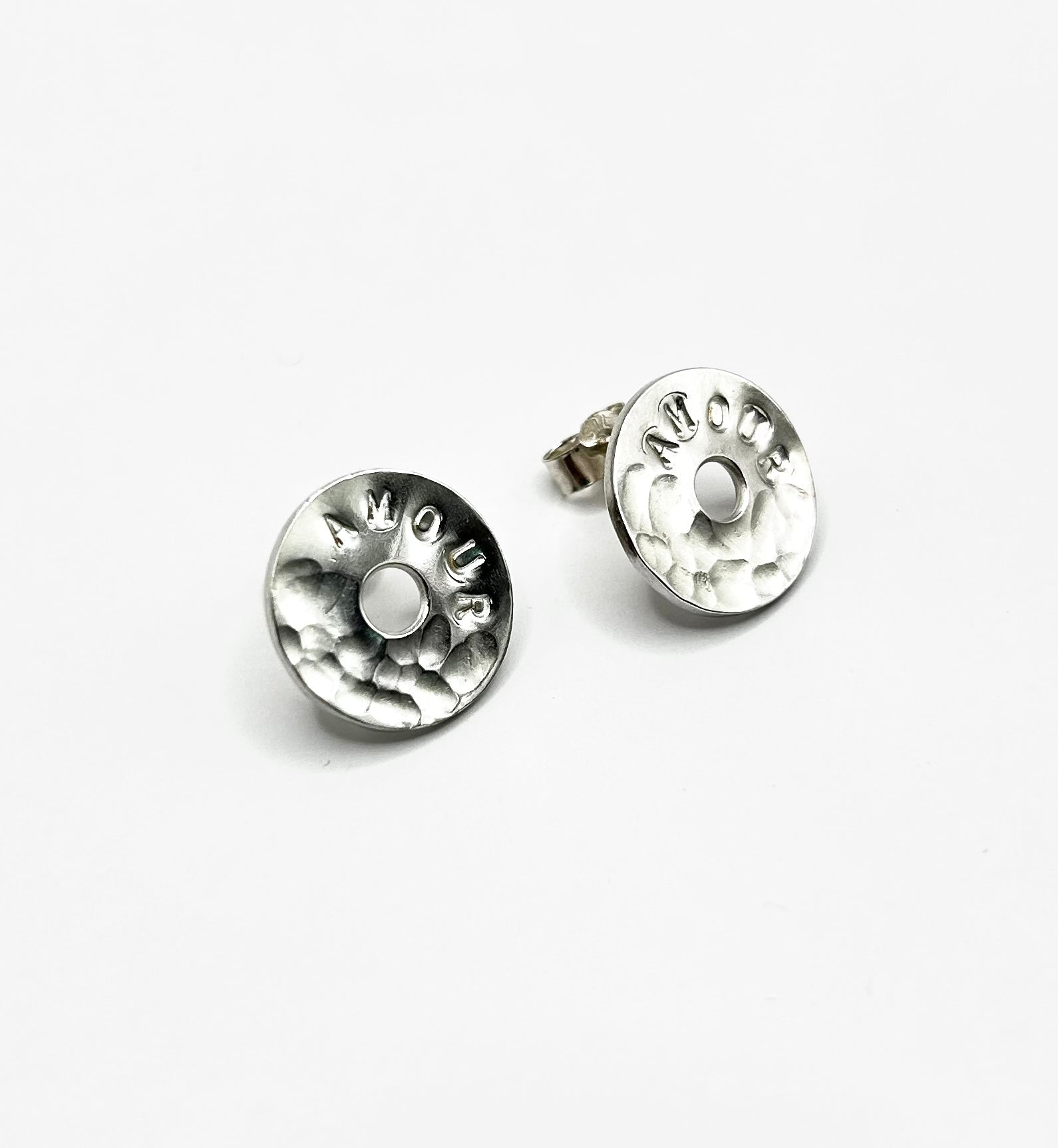 Réalisée en Argent 925 ou 950, les boucles d’oreilles Écusson incarnent l’élégance au design brute. Elles offrent des jeux de lumière grâce à leur moitié martelée et à leur moitié lisse.